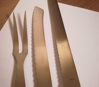 FAIRE OFFRE / couteau à pain : 33 cm (lame 22 cm) / service à découper : couteau 29 cm (lame 10 cm), fourchette 26,5 cm (lames 15 cm) / envoi possible