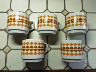 Vends 5 verres á limonade vintage avec fonds de couleur. Diamètre de 6 cm et hauteur de 16 cm. État impeccable, prix : 12 euros. Contact par mail ou par téléphone.