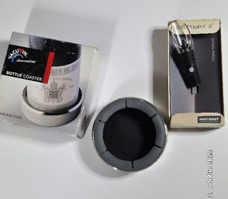 Lot d'accessoires autour du vin, un anti goutte et un dessous de bouteille Un dessous de bouteille pour protéger votre table contre l