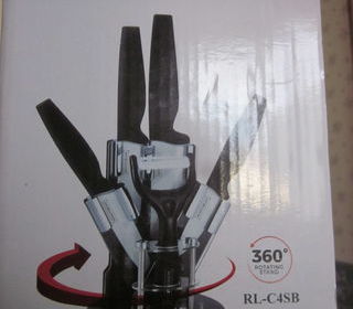 Un set de 4 couteaux en céramique avec un socle pour les avoir toujours sous la main. _ N'a jamais servi, est encore emballé - manche noir et lame blanche un couteau du chef, un