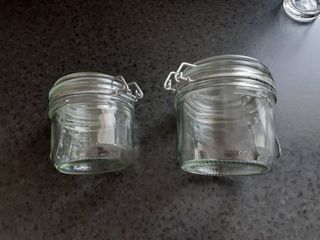 Lots de 40 bocaux de 200- 235 ml Le Parfait. Lot de 28 bocaux de 350-435 ml. Vend au détail .0,50 les pts et 0,80 £ les moyens.