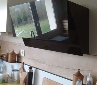 Vends Hotte décorative murale Mobalpa Podium BEPOM80VN (Electrolux Best Split) Largeur 80 cm - 710 m3/h (IEC) - 71 dB(A) - Classe A Mixte - 3 vitesses +intensif - Commandes Touch C