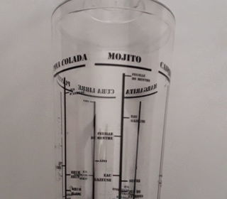 Table haute effet travertin. Hauteur 102cm, largeur60cm,longueur 120cm