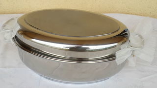 "Braisière ovale en acier inoxydable 18/10 (induction ?) SERIE PRO dimensions 39 x 27 cm hauteur 12,5 cm, 18,5 cm avec couvercle volume 10l Fourni avec un bouton ventouse pou