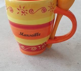 MUG: Neuf. 1 Mug ?Marseille' et sa cuillère. Neuf et jamais utilisé (collection). PRIX: 7 €
