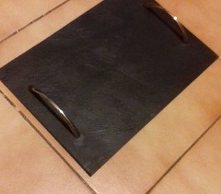 Plateau en pierre d'ardoise avec poignées de transport Dimensions : Longueur 31,5 cm - largeur 22 cm épaisseur 0,5 cm Très bon état Prix : 30 €
