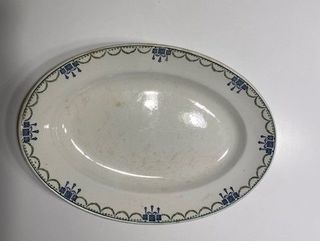 Plat de service St Amand - Dinoise Grand plat long oval ancien en céramique des Etablissements Saint Amand - Dinoise Années 1920/1930 L'émail est tâché, voir photo Dimens