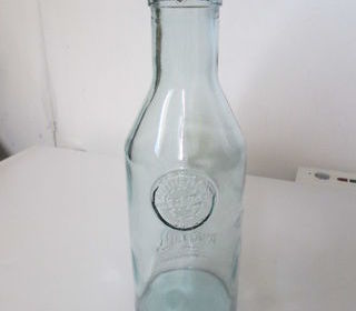 Carafe en verre Quai Sud, hauteur avec bouchon liège 30 cm. Contenance 1L. Avec bec verseur.