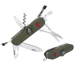 Avec lampe, décapsuleur, ciseaux, lime, tournevis, tire-bouchon, couteau, boussole... cet incroyable Couteau Multifonctions réunit les outils indispensables pour parer à tous les i