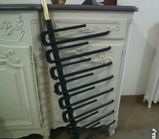VENDS PORTE-PANTALONS TELESCOPIQUE, REGLABLE EN HAUTEUR POUR 8 PANTALONS ACCESSOIRE SUR PIED AVEC TÊTE QUI SE GLISSE SOUS LA BARRE D'UN PORTANT A VÊTEMENTS IDEAL GAIN DE