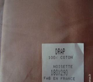 DRAP PLAT NEUF coloris NOISETTE, en 100% coton, dimension 180x290cm coloris se mariant avec toutes sortes d'imprimé. ERREUR LORS DE L'ACHAT, j'ai cru que cela convenait à un