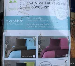 Ensemble de lit : 4 pièces 100% microfibre - 1 drap plat 240 x 290 cm - 1 drap housse 140 x 190 cm - 2 taies d'oreiller 63 x 63 cm SECHAGE RAPIDE PAS BESOIN DE REPASSAGE;