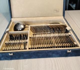 Menagere métal argenté 12 fourchettes12 gros cuillères 9 petits cuillères une louche Louis pradel très bon état