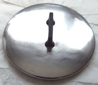 Couvercle en inox bombé, avec un trou sur le bord l'évacuation de la vapeur Poignée bakélite de 9 cm de large Diamètre extérieur : 27 cm Diamètre intérieur : 25,7 cm Inox de bo