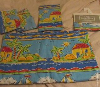 ENSEMBLE POUR LIT 2 PLACES motif ILE OUTREMER ET PAYSAGE COLORIS FLUO HOUSSE DE COUETTE 240 x 220 cm 2 taires d'oreiller rectangulaire 1 taie d'oreiller carrée 65x65cm
