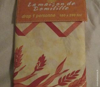 DRAP PLAT 180 X 290 cm pour 1 personne «LA MAISON DE DOMOTILLE» 100% COTON longues fibres bord du drap petits carreaux Je possède également l