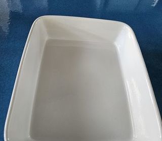 Je vends ce grand plat blanc en grès culinaire du Portugal en excellent état. Marque=CERUTIL 34cmx27cm.6 cm de profondeur. L'intérieur est impeccable, mais des traces sur le de