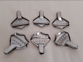 Lot de 6 presse-citrons individuels Pour la table d'invités (fruits de mer, etc.) Matière : inox Très bon état Le lot : 9 euros