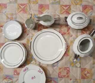 Grand plat à tarte diamètre : 34 cm année 1960 en faïence, modèle Diligence Saint-Amand semi vitrifié, bord doré et vert d'eau, en bon état, pas d'envoi, disponible jusqu'à fin mar