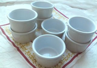 Lot de 8 ramequins en céramique, de près de 9 cm de diamètre et de 5,5 cm de haut. La contenance de chaque ramequin est de 0,15 l. Très joli feston en bord, ramequin élégant sur