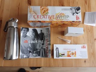 Vends siphon à chantilly et sauces utilisé par les professionnels, neuf jamais utilisé encore dans son emballage d'origine, avec sa notice et ses accessoires et un livret pour prép