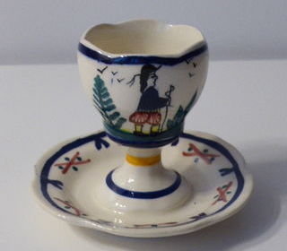 prix ferme sans négociation possible : aucune réponse ne sera faite aux demandes de baisse de prix Coquetier avec coupelle en faience signé HB (Hubaudière Bousquet) QUIMPER