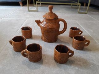 Ce service à café original est artisanal. Chaque tasse est unique. Il est en terre cuite émaillée. A la fois utile et décoratif. N'hésitez pas à tenter une offre (raisonn