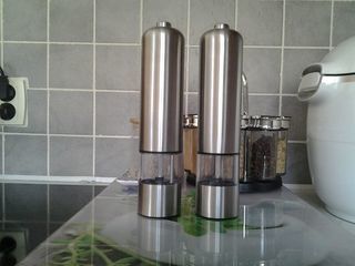 lot de 2 moulins électrique à épices, en acier, équipé d'un broyeur en acier inoxydable, alimentés par 4 piles R.L06 (non fournies) en appuyant sur le bouton de dessus avec une s