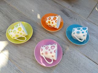 Tasses et sous-tasses à café Neuves n7p Couleur et motifs vintage 4 tasses et 4 sous-tasses