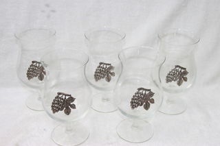 5 Grands verres sur pieds avec déco Vigne en étain 15€ le lot Hauteur 17.5 cm Excellent état Possibilité de livraison gratuite sur Melun, Nangis ou envoi postal