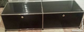 Vend un lowboard tv/hifi usm haller sur 6 pieds réglables de couleur noir graphite avec 1 porte abattante et 1 tiroir coulissant équipé de paniers usm chromés . Dimensions ; L1520x