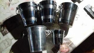 3 seaux a champagne en inox 20 euros le seau 1 seau a champagne en aluminium 15 euros 1 seau a glaçons en inox 10 euros