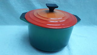 Diamètre 16 cm - Hauteur avec couvercle 14 cm Coloris vert et couvercle rouge orangé 2 Poignées pour le transport Très bon état Possibilité de livrer sur Montereau, Nangis ou e