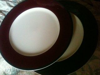 *** 4 assiettes Pagnossin TREVISO : 2 plates + 2 creuses Pagnossin Treviso BURGUNDY & GREEN Dinner plate, 10 3/4 Rouge lie de vin et vert foncé en alternance. Parfait état. 30€