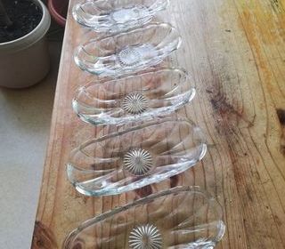 6 Reposes ou porte-couteaux en verre de style vintage , finition en tréfle Dimensions : Longueur 8,5 cm Hauteur : 4 cm