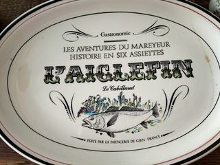 À vendre ce lot de 2 assiettes à poisson - L'Aiglefin et la Rascasse - de la série Les aventures du Mareyeur, Manufacture de Gien Estampillés Gien France 1 assiette en très bon