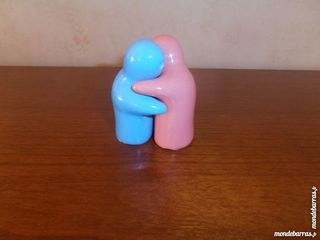 Quand ils ne se prennent pas dans les bras, ils vous servent de salière et poivrière. Un bouchon en plastique transparent en dessous permet de les remplir facilement. 7 cm de h