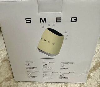Bloc couteaux Smeg couleur crème Bois noir 6 couteaux fourni avec Taille de la lame : 19.0 Coupe des Légumes, Fruits, Pain et Brioche, Viande, Poisson Compatible avec lave-v