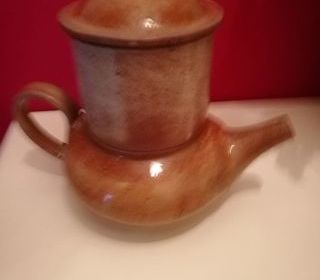 CAFETIERE GRES (sans marque) EN TRES BON ETAT // ON PEUT L'UTILISER EN CAFETIERE OU EN THEIERE // HAUTEUR TOTALE 21 CM