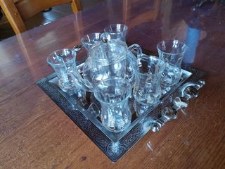 Joli service à thé de type oriental avec son plateau en métal argenté