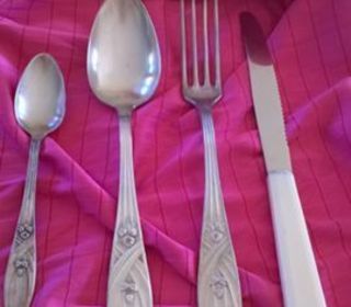 ménagère en métal argenté sans coffret, manque une grande cuillière,en bon état