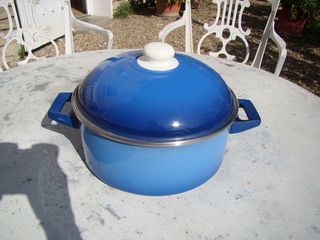 Faitout émaillé diamètre : 25 ,5 cm hauteur (sans le couvercle) : 11 cm en bon état A noter : quelques traces d'usage (voir photo) A venir chercher sur place Règlemen