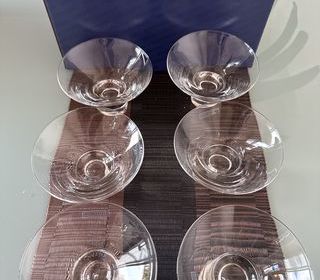 Ensemble de 6 très belles coupes en verre à dessert (ou trou normand ?) L'étiquette Guy de Grenne est encore sur chaque coupe