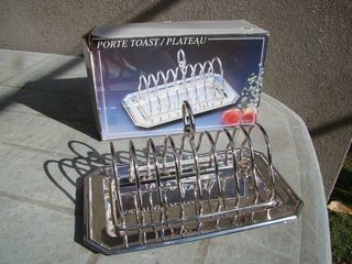 Porte-toasts avec son plateau vintage Serviteur à toasts en métal argenté avec son emballage d'origine Plateau de forme octogonale Longueur : 25 cm Largeur : 15 cm P