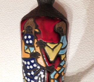 vds.un vase en céramique et lave de marmaca de la république de san marino année 1950 hauteur 37 cm diametre maxi 15 cm poids 2100 grs.signé marmaca rep s marino .40€ plus mondial