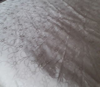 Nappe ronde 180cm diamètre 100% polyester marron clair avec motif satin état neuf renseignements complémentaires me contacter merci
