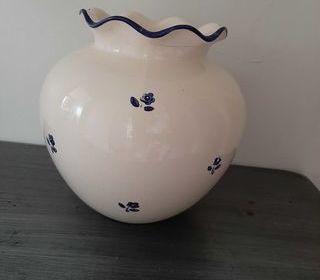 Vase poterie, déco fleurs bleu nuit diamètre et hauteur env. 20 cm 1 légère fissure visible sur la 1ère photo à récupérer à Cagnes-sur-Mer contre paiement, pas d'envoi