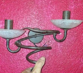 Bonjour Mesdames et Messieurs voici une paire de lampe mural pour couloir, chambre au dessus des tables de chevets ou au Salon. Disque en verre, barres en acier rouillé vernis mat