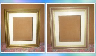 Vends un lot de deux cadres d'art en bois:(Possibilité de les acheter séparément aux tarifs indiqués ci-dessous) -un cadre aux contours dorés et fond blanc L=40cm x l=35cm (Ex