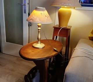 Support de lampe électrifié en faïence signé. En parfait état. À enlever sur place de préférence. Renseignement par téléphone de préférence